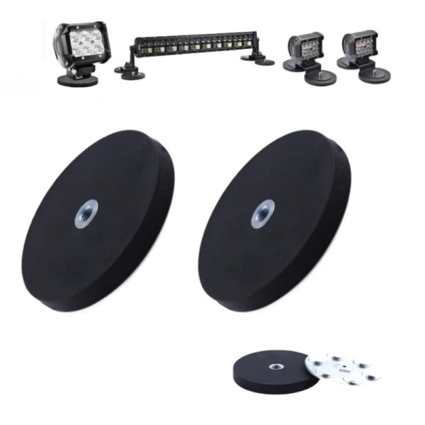 Голям силен магнит, предназначен за бързо и надеждно закрепване на фарове към метални повърхности (таван, капак и др.). Подходящ повечето фарове. Монтиран към магнит, фара става преносим и е възможен бърз монтаж навсякъде.
